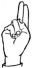 На ћирилици написано САНДРА БАИНОВИЋ састоји се из 14 слова [?]. Исписано ћириличном једноручном азбуком за глувонеме: